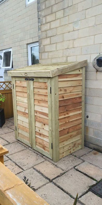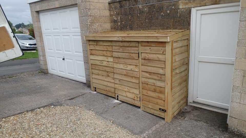 Built using pressure treated Scandinavian pine and cladded with feather edge timber.